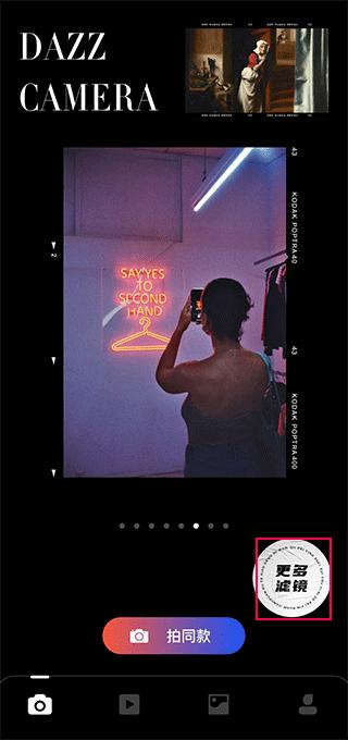 1、首先打开dazz相机安卓最新版,点击更多滤镜;