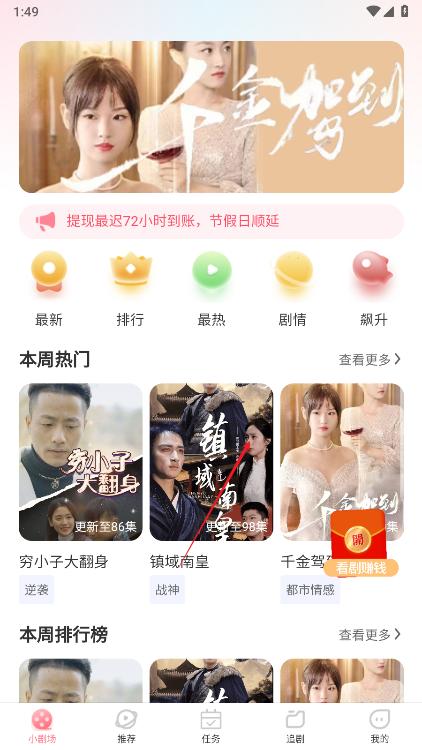 斯耀短剧最近刚上线,功能不太稳定,昨晚刚测就中个大包,目前平台有两个任务值得做下,一个新人福利免费领2元红包,另外一个签到一周抽奖。