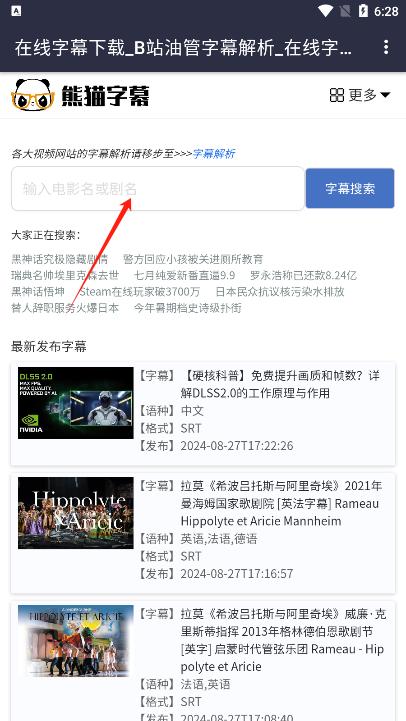 2、我们进入后可以直接搜索想要解析的字幕,搜索片名就行