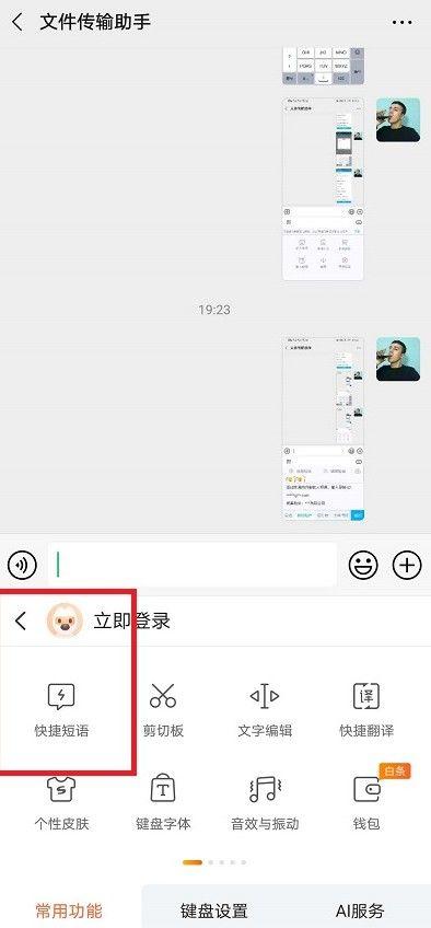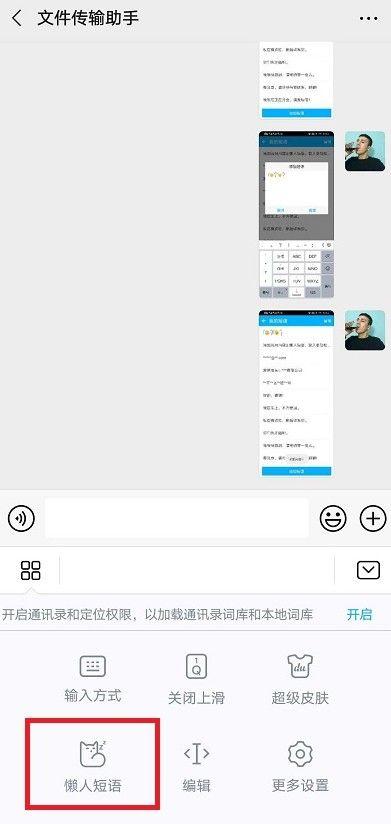2、点开功能按钮后下面的选项中有懒人短语选项,点击懒人短语,进入编辑。