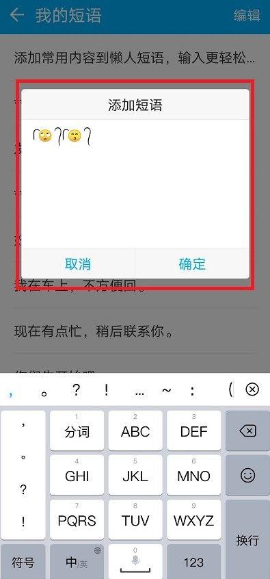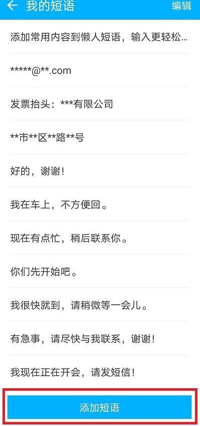 3、在懒人短语界面,点击右上方的编辑短语,进入编辑。