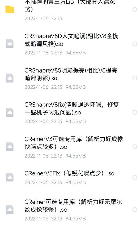 打开后这些后缀为.so的就是成像库了,可以看到不同的成像库,后面有介绍根据个人囗味选择后下载